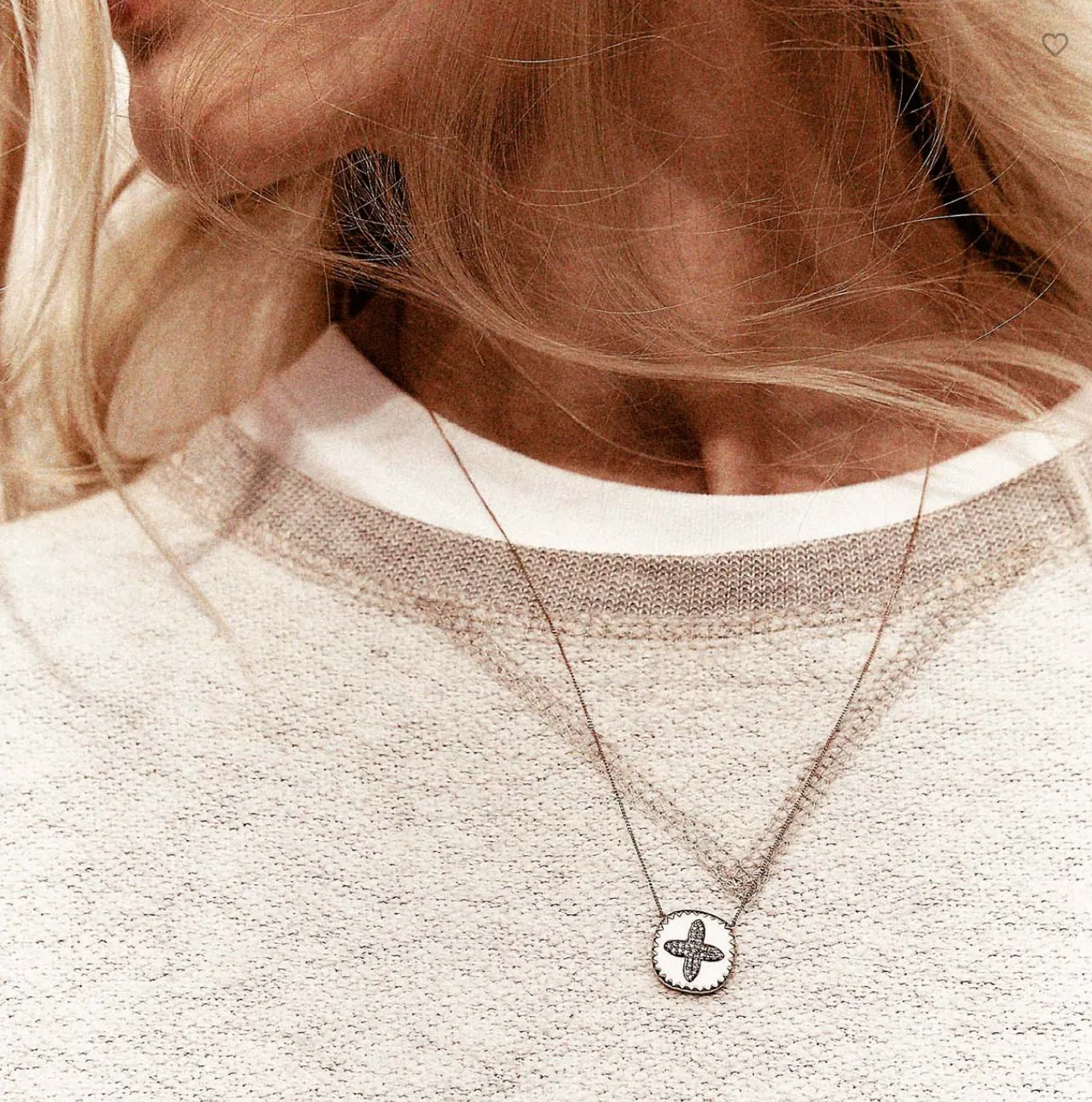 Thème phare de la Maison Pascale Monvoisin, Bowie a été imaginé en bakélite noire ou blanche avec des incrustations de diamants, dans un serti soleil. Ce précieux iconique se porte le long d’une fine chaîne autour du cou.